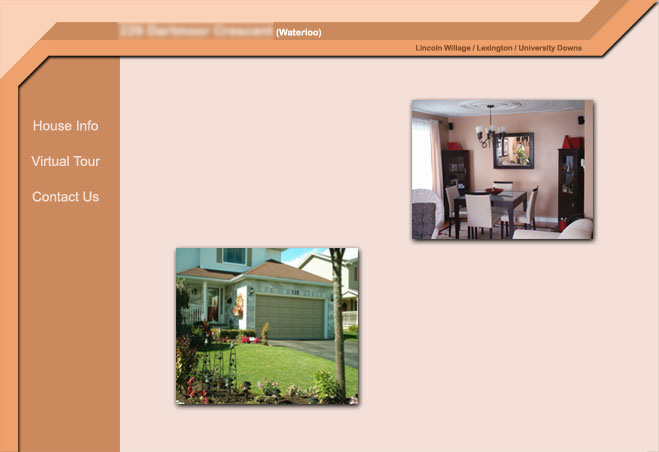 This was a site designed for a client who was looking to sell their home on their own, without the help of a realestate agent, they chose this particular template from my slection of tempates for no frills sites modififed it to fit into what they where looking for (colour, text, etc). Client supplied the images and text that where used within the site. Shortly after the site going live, the home did sell.